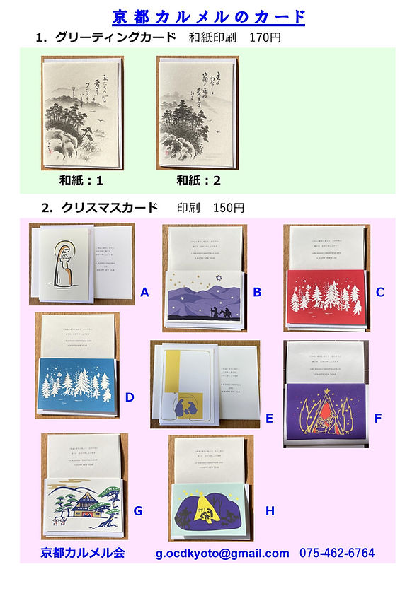 ご注文いただける場合は、①ご希望の商品アルファベットと個数、②お送り先ご住所、お電話番号、お名前、③ご注文者のご住所、お電話番号、お名前、をメールで当修道院までお知らせください。